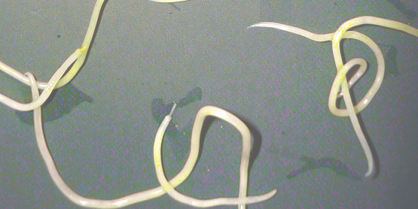 犬に感染する回虫は糸状の細長い体を有し、色は白~黄白色。成虫になると5~15cm程度の長さになります。